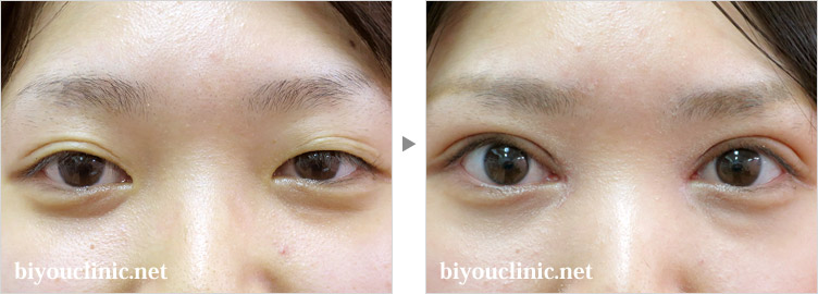 某美容外科で二重埋没法を2回行った症例です。幅広で眠そうな目になったので再手術を希望して御相談いただきました。二重のラインは限界を超えて幅広に設定され、目が開きにくくなっていました。今回は二重切開法により、埋没法の糸を全て除去して最適なラインを設定し、目がパッチリ開くように調整しました。自然なパッチリ目を作製することが出来ました。。二重の手術後ラインが太すぎて目が開かないと悩んでいる方は多くいらっしゃいます。狭いラインを太くする手術は簡単ですが、広いラインを狭くする手術はとても難しい手術です。一度ついた不自然なラインを剥がして狭いラインを再設定する必要があります。自然なラインになり目が大きく開くようになります。