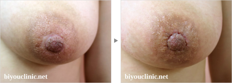 乳輪が大きいと、バスト全体が年老いて、汚く見えることがあり、乳輪肥大を気にされている方が多くいらっしゃいます。乳輪肥大の方に、乳輪縮小術が行われておりますが、再度乳輪が大きくなってしまった、傷が開いてきて目立つ、乳輪の大きさが小さくなっていない、などの御相談を頂くことがあります。