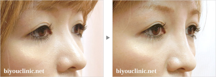 鼻が上下に短くダンゴ鼻に見えるので、某美容外科で鼻ヒアルロン酸注射をこれまでに3回やった症例です。鼻尖だけが高くなり、東南アジア型の鼻に見えるために御相談いただきました。鼻背部に細く、ヒアルロン酸を注入し鼻筋を通しました。希望の欧米人型の鼻になりました。鼻ヒアルロン酸は、多くのクリニックで行われていますが。希望通りにならないということで御相談を頂いております。鼻背部や鼻根部に入れたヒアルロン酸が横に流れてしまい、高くならないことが多く、入れ過ぎて、目と目の間がコブ状になってしまう方もいらっしゃいます。鼻筋を細く作るためには豊富な経験が必要です。